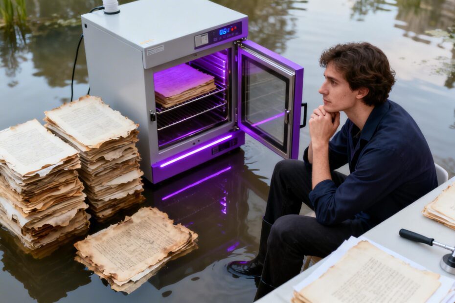 Guia prático e técnico para recuperar documentos danificados por enchentes usando estufas de secagem controlada; estratégias, montagem e cuidados essenciais.