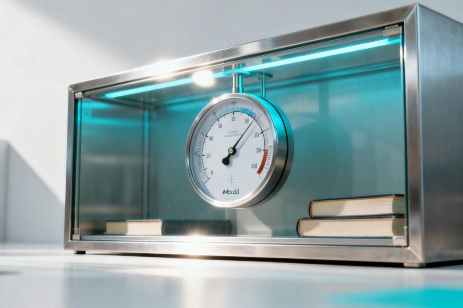 Guia prático para escolher, instalar e calibrar um higrômetro analógico de precisão para proteger livros em vitrines de aço, mantendo o microclima ideal.