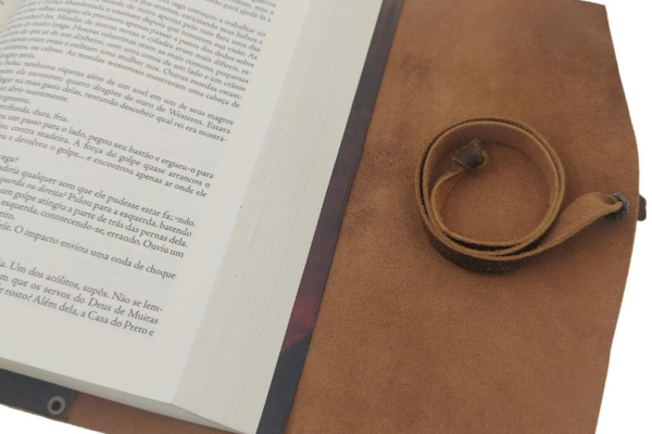 Os sinais mais comuns são rigidez, pequenas rachaduras, perda de flexibilidade e alteração de cor. Também pode surgir deformação da capa e fragilidade na lombada.